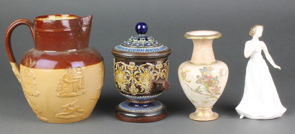 A Royal Doulton figure - Cherish HN4442 6", ditto harvest jug an oviform vase and a tobacco jar and cover