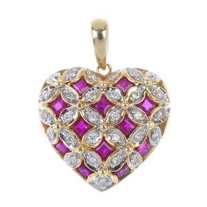 A ruby and diamond heart pendant.