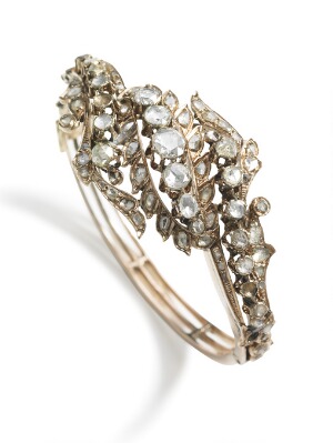 A Russian diamond bangle set with numerous rose-cut diamonds, mounted in 8k gold.