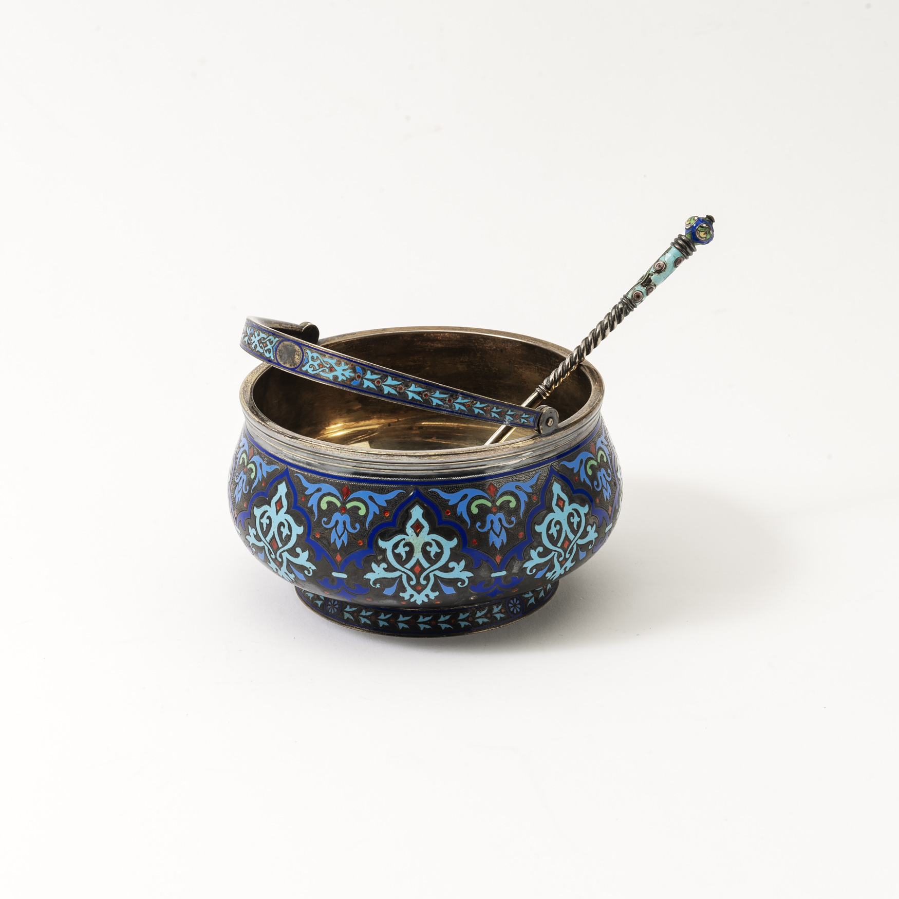 The sugar-basin marked Grachev Brothers and with maker's mark Cyrillic 'AP', St Petersburg, ca. 1900; the spoon with maker's mark Cyrillic 'IX' for Ivan Khlebnikov, Moscow, late 19th century, both with later Dutch duty mark, a 'V', silver alloy 835/1