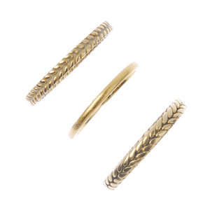 To include two early 20th century woven gold band rings, together with a mid 20th century plain band ring. Total weight 4.4gms.