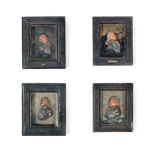A SET OF FOUR EARLY 19TH CENTURY WAX RELIEF BUSTS OF NAVAL FIGURES