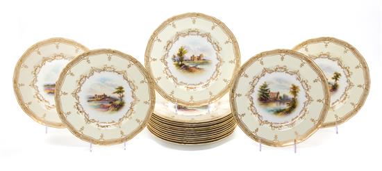 A Set of Seventeen Worcester Porcelain Dinner Plates