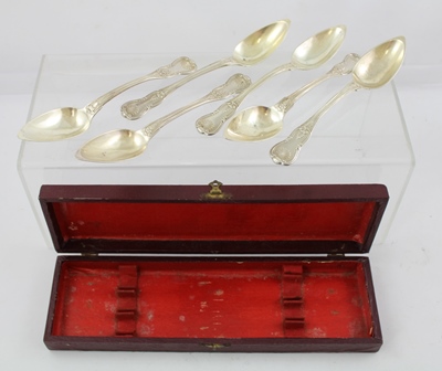 A SET OF SIX FRENCH WHITE METAL KINGS PATTERN DESSERT SPOONS