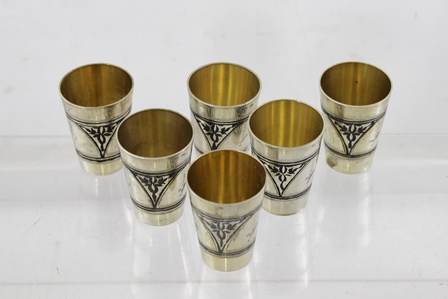 A SET OF SIX RUSSIAN NIELLO SILVER TOTS