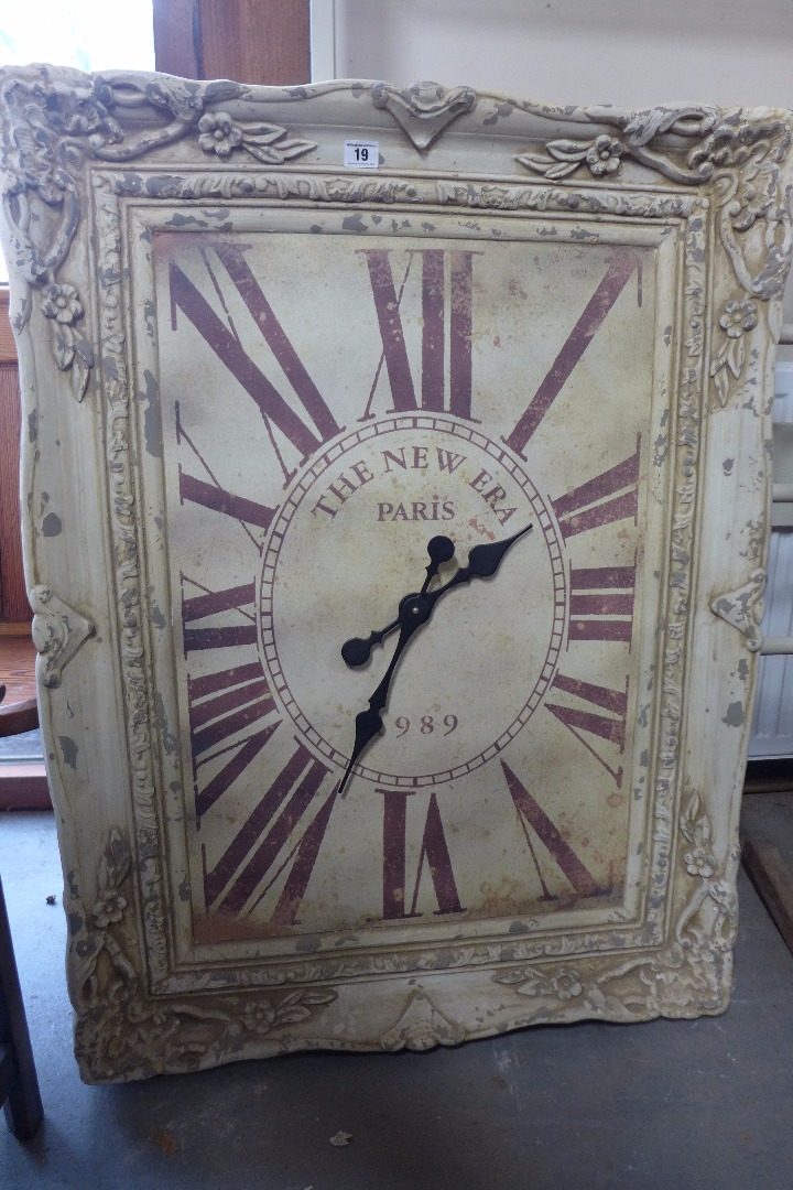 A shabby chic wall clock with a quartz movement