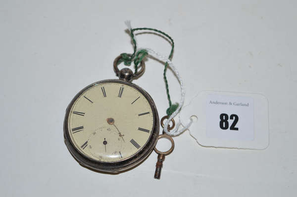 A silver cased open faced pocket watch, with white enamel roman dial.