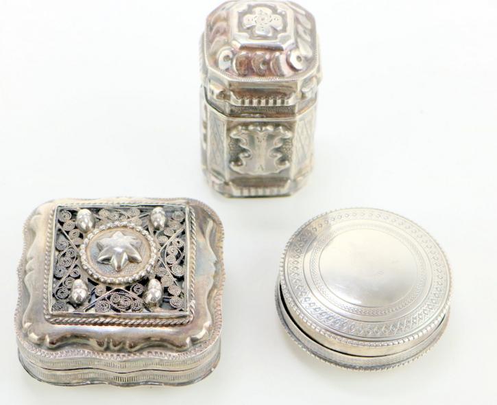 A high octagonal model with engraving and cartouches in relief. Mt. JH van der Meulen, Joure. Jl. 1907. A square gecontourneerd model with wire mesh, acorns and star on the cover. Mt. unclear. Jl. 1873.Een round model with fine engraving and loose co