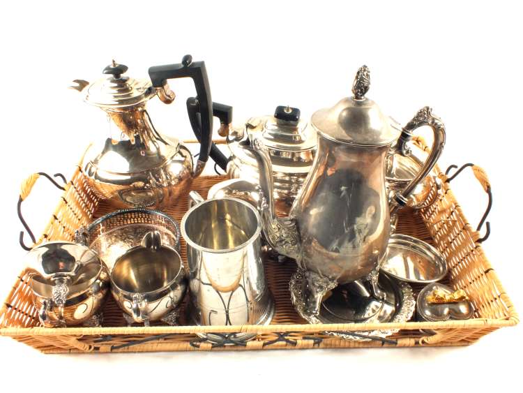A Silver plated four piece tea set and other Silver plate