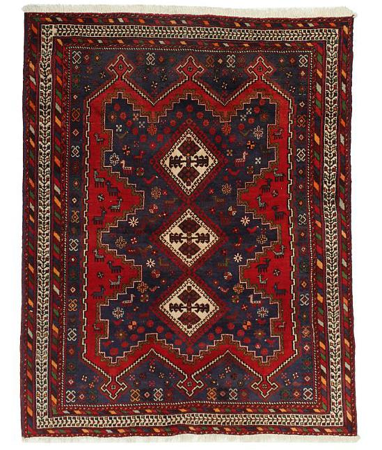 : A Sirjan rug, classic design with hooked medallions on blue base
