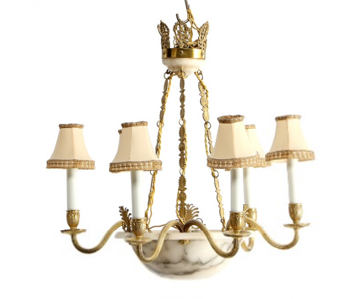 A six-light bronze and alabaster chandelier