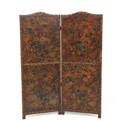 A small gilt-leather dressing screen