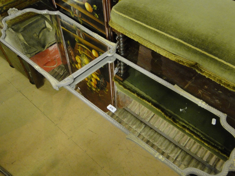 A small pier mirror with tasselled carved frame and a similar smaller mirror, (2).