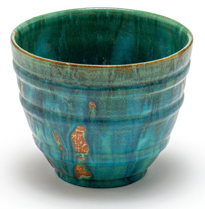 A South African ceramic green and blue-glazed bowl, probably Linn Ware