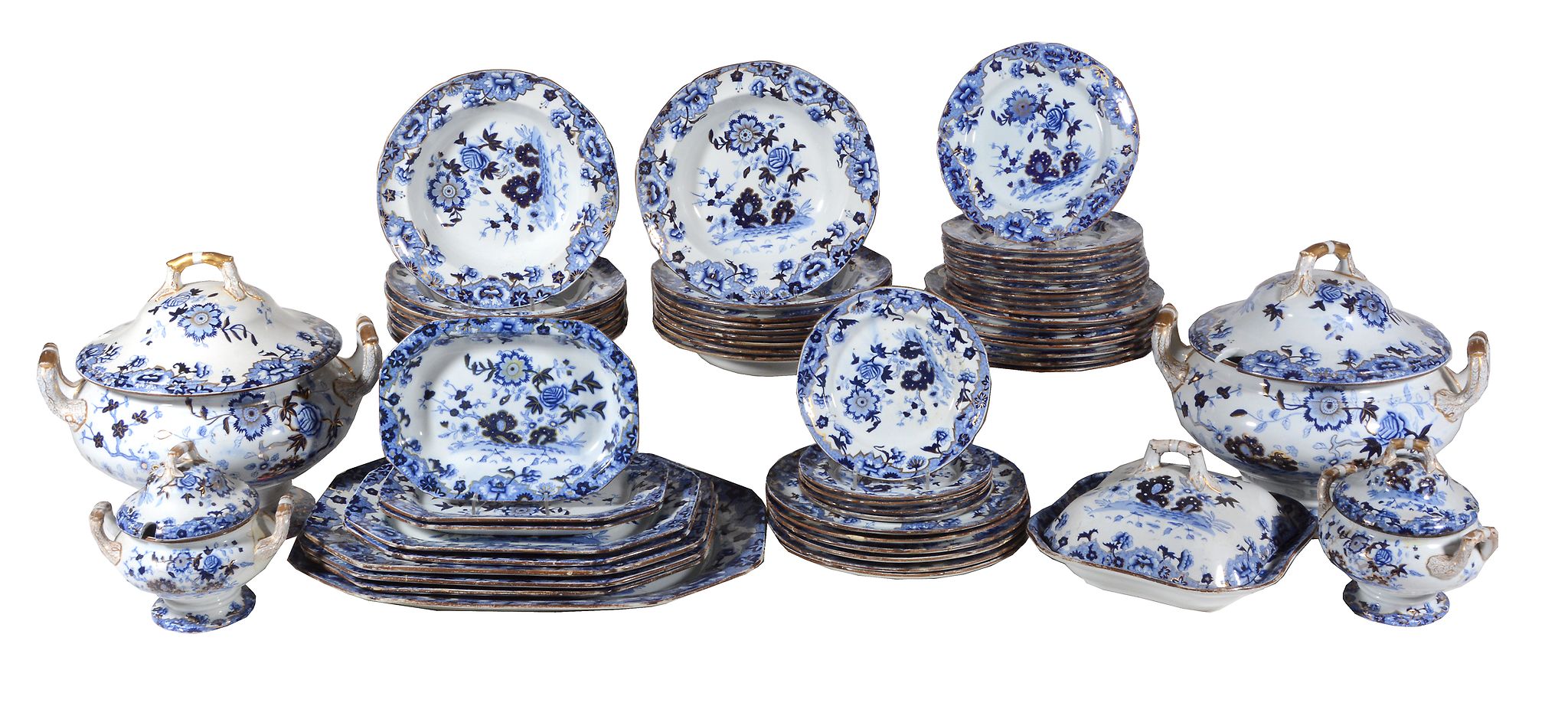 A Spode New Stone blue and white printed part dinner service