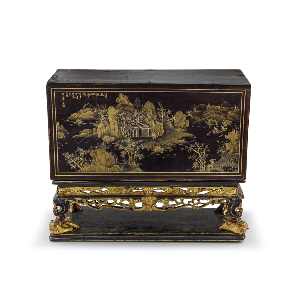 A Straits Chinese giltwood and lacquer covered altar box, Qing Dynasty, 19th century