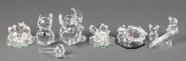 A Swarovski figure of a seated kitten 1", 6 other crystal animals