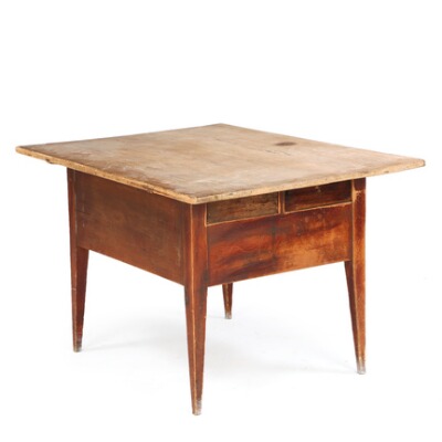 A Swedish rural pinewood work table; partially painted