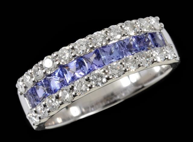 and Diamond half Eternity Ring channel-set row of princess-cut tanzanite between two rows of pav -set brilliant-cut diamonds in 18ct white gold, ring size N 1/2 - O
