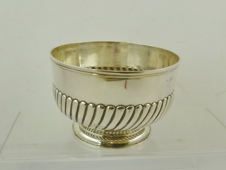 A TRADITIONAL VICTORIAN SILVER PEDESTAL BOWL, having applied wire rim, swirl reeded lower belly and moulded foot, makers mark obscured, London 1892, 384g.11cm high x 16.5cm diameter