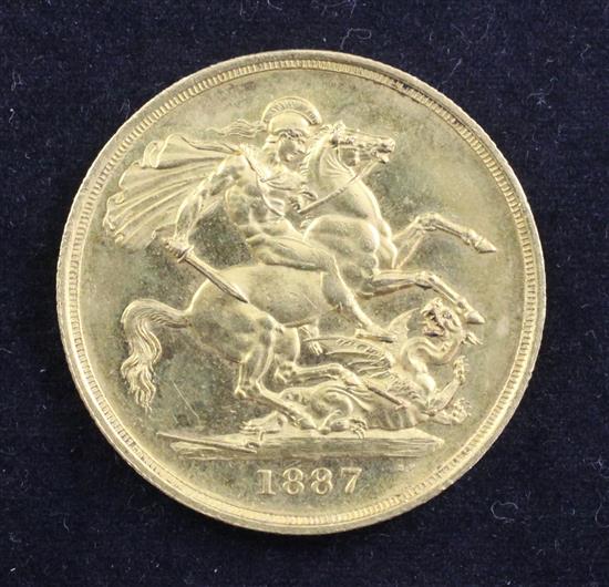 A Victoria Jubilee gold two pounds, 1887, EF