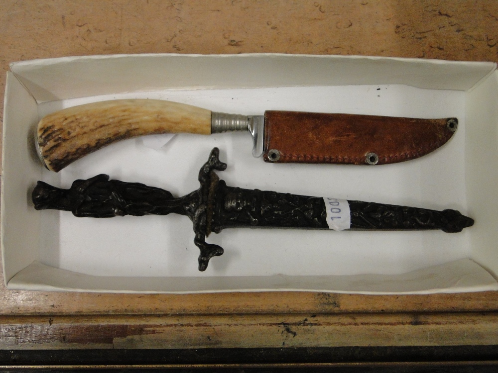A Victorian bronze stiletto and a continental sheath knife.
