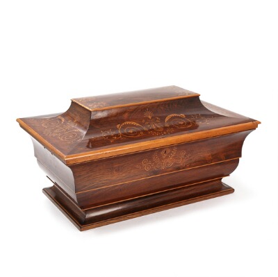 A Victorian mid 19th century rosewood box, richly inlaid with intarsia