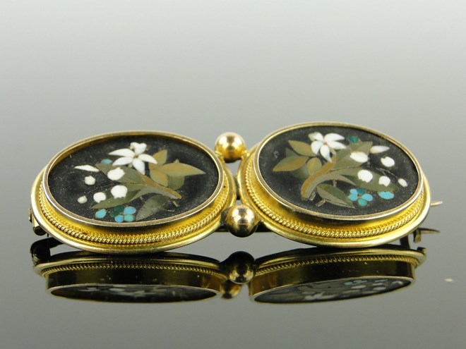 A Victorian pietra dura 2 panel brooch