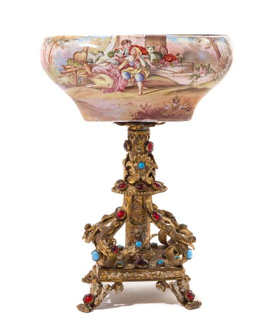 A Viennese Jeweled Gilt Metal Mounted Enamel Compote