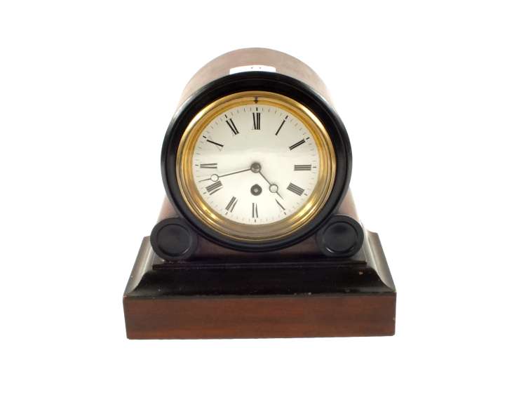 A Walnut and ebonised dome top mantel clock