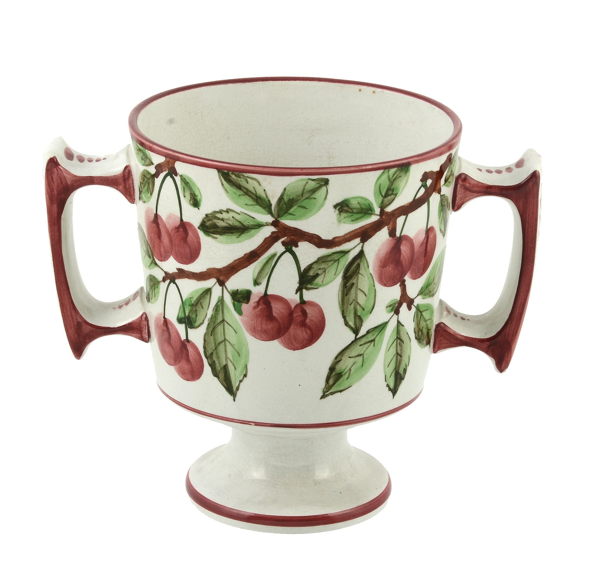 A Wemyss two-handled loving cup, circa 1900, painted with branches on cherries
