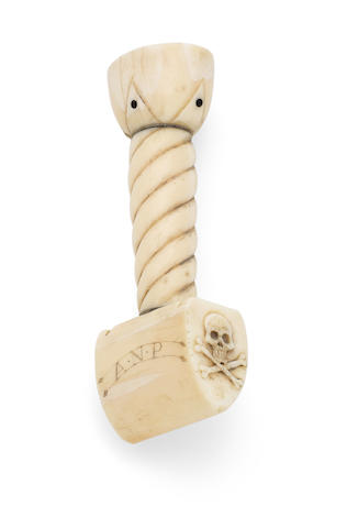 A WHALE IVORY SAILOR'S SCRIMSHAW SEAM RUBBER