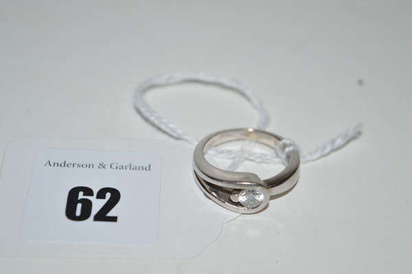 A white stone set ring