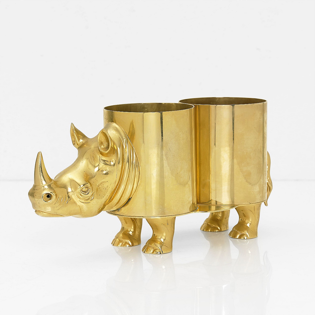 A WINE COOLER, in the shape of a rhinoceros, brass, h. 15, w. 31 cm