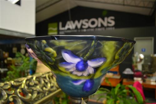 African Tribal Mask DepictArt Glass Shade Standard Up Lamp ing Elephant Head Piece with Bone Tusks and African Warrior Spear Fig