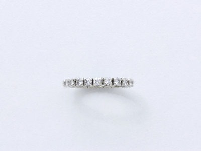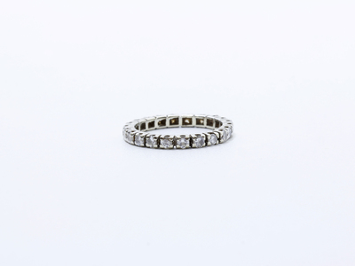 Alliance américaine en or 750 millièmes rhodié, ornée d'une ligne de diamants brillantés en serti griffe. Poids brut: 2.10 g. TDD: 51.