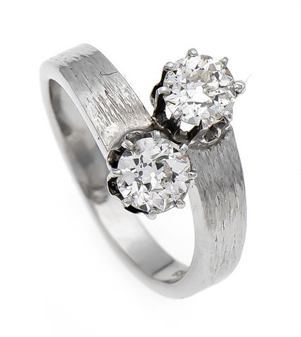 Altschliff-Diamant-Ring WG 585/000 mit 2 Altschliff-Diamanten, zus. 1,2 ct get.Weiß/PI, RG 54, 5,6 g, Wertgutachten 2013 über Euro 4.600,-