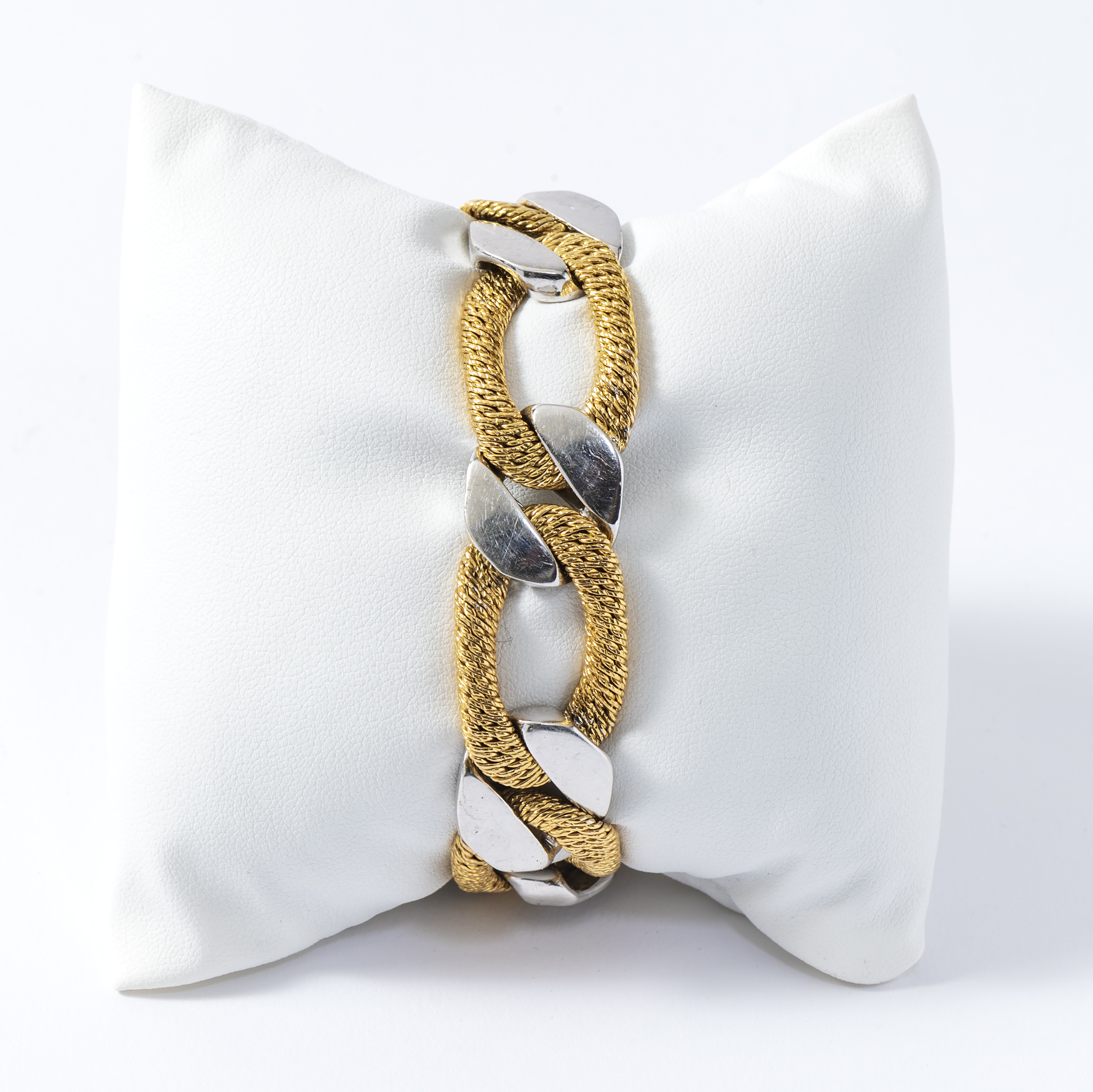 Interspaced with elongated thatched yellow gold links to a hidden white gold clasp lock. L 20 cm. Gross weight approx. 85 g
