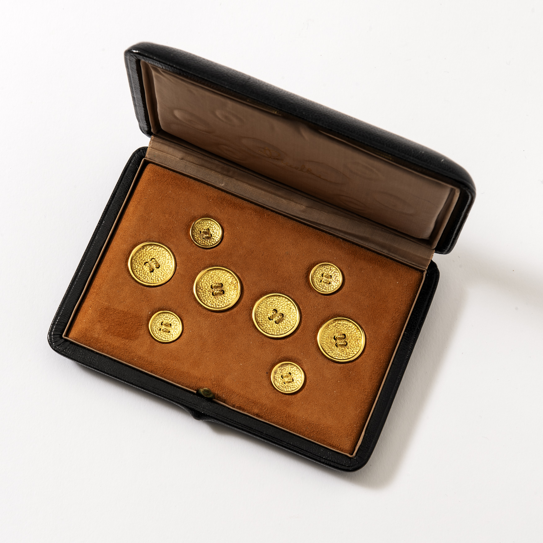 Designed as four large and four smaller buttons in original fitted black leather case Gross weight approx 21.2 g