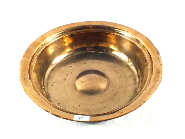 An 18th Century Brass or bell metal bowl with raised central boss