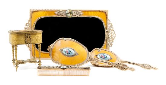 An Assembled French Gilt Metal and Enameled Dresser Set
