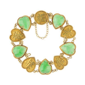 An early 20th century Chinese gold jade hearts bracelet., Early 20th century