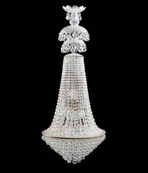 An early 20th century prism chandelier, eight brass sockethouses mounted for electricity