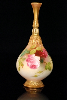 An early 20th Century Royal Worcester bottle vase decorated with a pink and crimson rose against a blush ground, signed A. Lane, green printed mark with date code for 1910, height 21.5cm