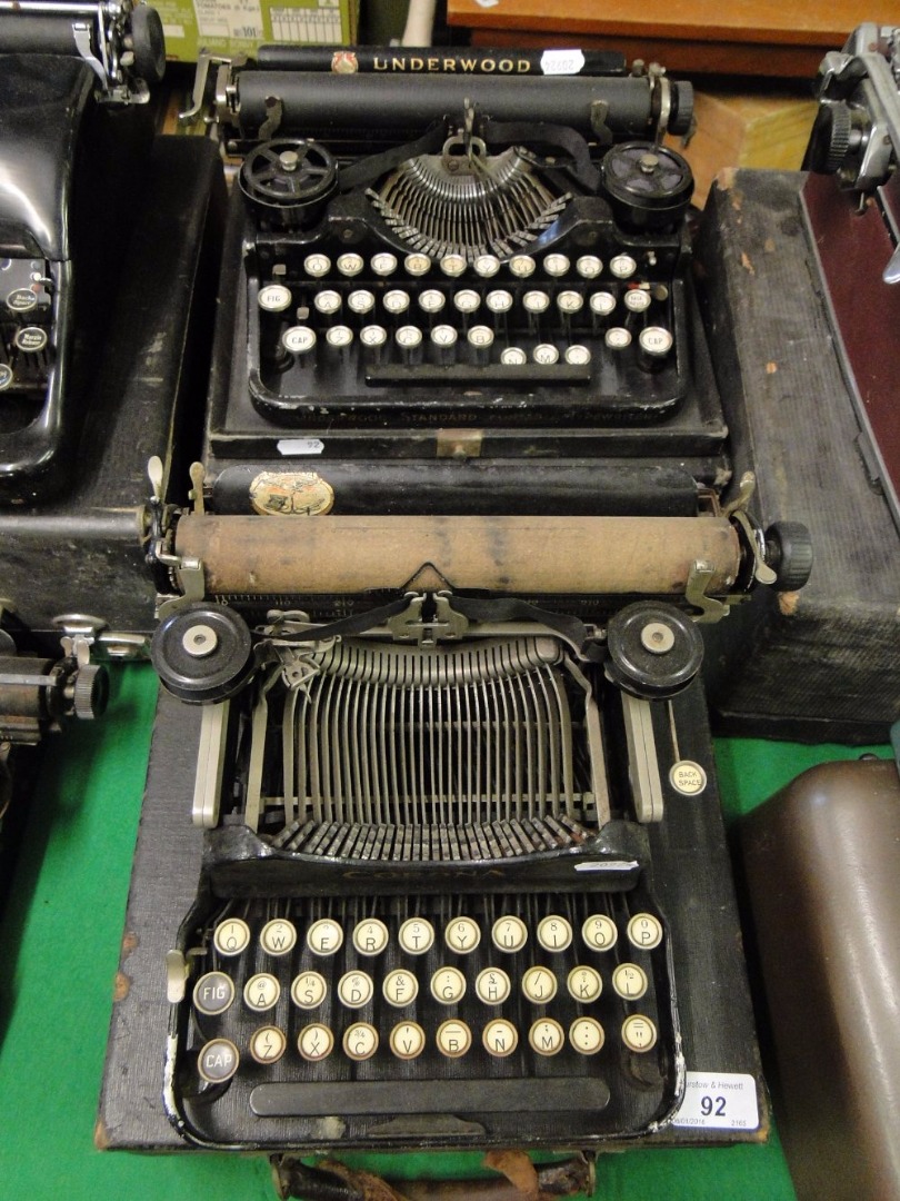 An early portable Corona typewriter, cased and an Underwood portable typewriter, cased.