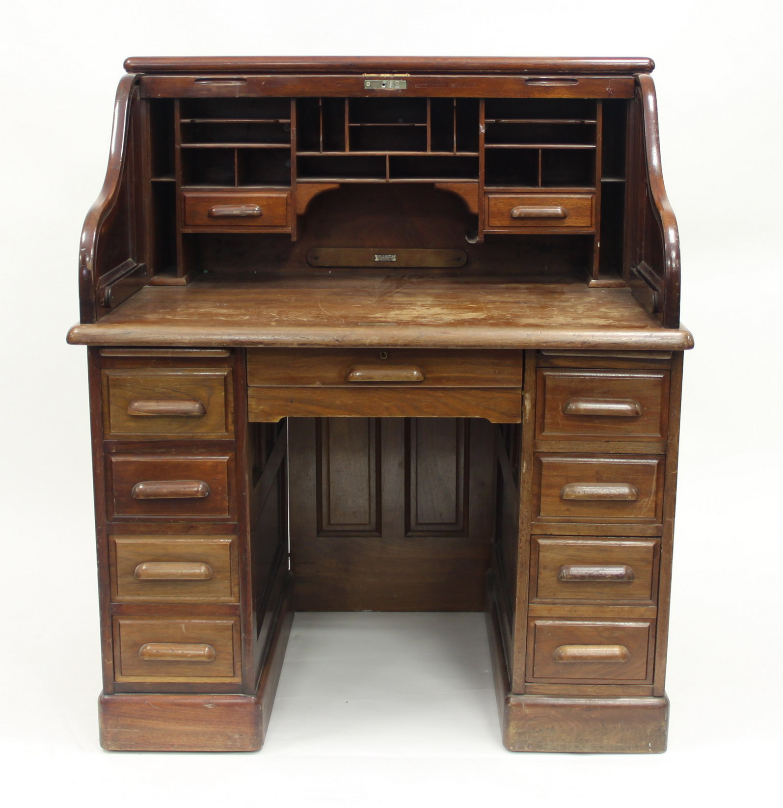 An Edwardian mahogany estate desk by Simpole's Office Furniture
