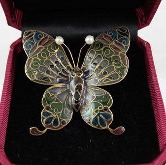 AN EDWARDIAN PLIQUE-a-JOUR BUTTERFLY BROOCH