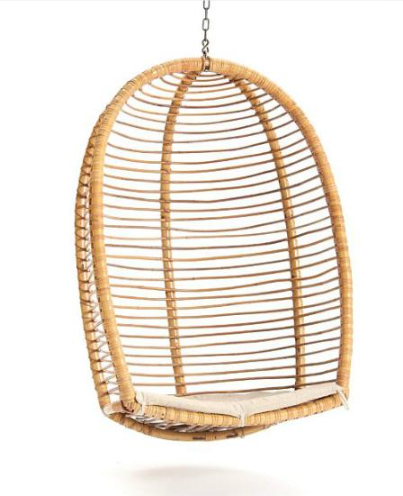 An egg shaped bamboo and rattan wickerwork chair for ceiling suspension