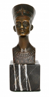 An Egyptian revival bronze bust of Nefertiti, on marble plinth base, height 14cm