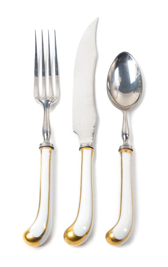 An English Porcelain Mounted Flatware Service, A.E. Lewis & Co.